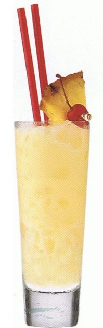 A hozzávalókat mixeljük össze elektromos mixerben jéggel. Egy hosszúitalos poharat töltsünk meg félig jégkockákkal és tegyük bele az italt. Ananászdarabbal és cseresznyével díszítsük.