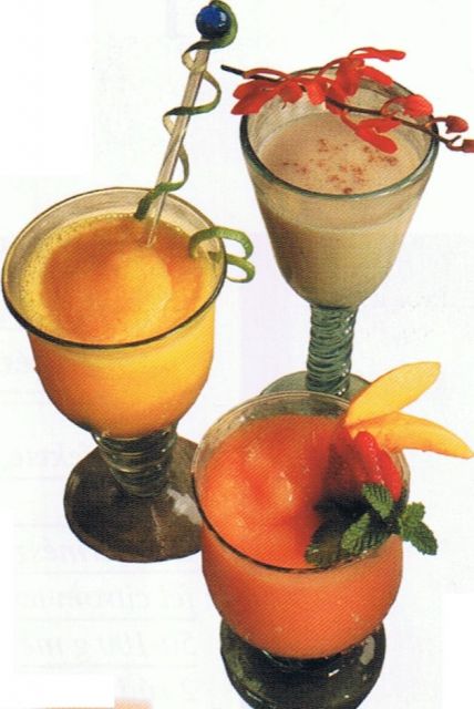 A hozzávalókat verjük fel 3 ek. tört jéggel a mixerben. Pohárban kínáljuk.