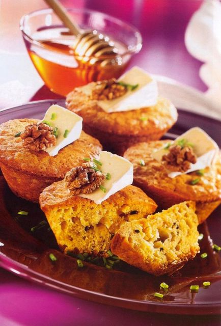 A sütőt 180°C-ra melegítjük. A sütőforma mélyedéseit kikenjük, vagy papírformákat teszünk bele. Egy nagy tálban a lisztet elkeverjük a zabpehellyel. Az élesztőt feloldjuk 1 dl meleg vízben, majd a lisztes keverékhez adjuk. Hozzáadjuk az olajat, a sót és a mézet, majd az egészet sima tésztává gyúrjuk. Langyos helyen, letakarva kb. 30 percig kelni hagyjuk. A töltelékhez a lágysajt héját eltávolítjuk, a belsejét villával szétpasszírozzuk, majd kikeverjük a krémsajttal és a tejszínnel. Az olajbogyókat kimagozzuk, apróra vágjuk. A körtéket megmossuk, meghámozzuk, negyedekre vágjuk, eltávolítjuk a magházukat, apró kockákra vágjuk, és az olajbogyóval a sajtos masszába keverjük. A hozzávalókat jól elkeverjük, sóval és citromlével pikánsra ízesítjük, majd félretesszük. A tésztából 12 golyót formázunk. Egy fakanál nyelével a golyókba egy-egy mélyedést nyomunk, és mindegyikbe egy-egy teáskanálnyi sajtos-körtés keveréket töltünk. A tésztát zárjuk össze a töltelék felett, és a golyókat tegyük a sütőforma mélyedéseibe. A golyók tetejét megkenjük vízzel, majd a sütő középső rácsán 180°C-on kb. 15 perc alatt készre sütjük. A muffinokat 5 percig pihentetjük a sütőformában, majd kivesszük. Közben a metélőhagymát megmossuk, leszárítjuk, és apróra vágjuk. A muffinokat camembert-rel, dióval és metélőhagymával, még melegen tálaljuk.Hozzászólások: